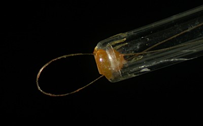 ヘアル−プの例.写真に見えている部分の長さは約 1.1 cm.