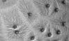 The fruiting body of Polysphondylium has regularly-spaced whorls of branches. The tail part of the cell mass rising along the stalk is pinched off and left behind, from which normally 2 to 6 tips appear in the periphery, each making a tiny fruiting body. This is P. pallidum. (5 min, 6 h, 0.75 mm) (s10) |